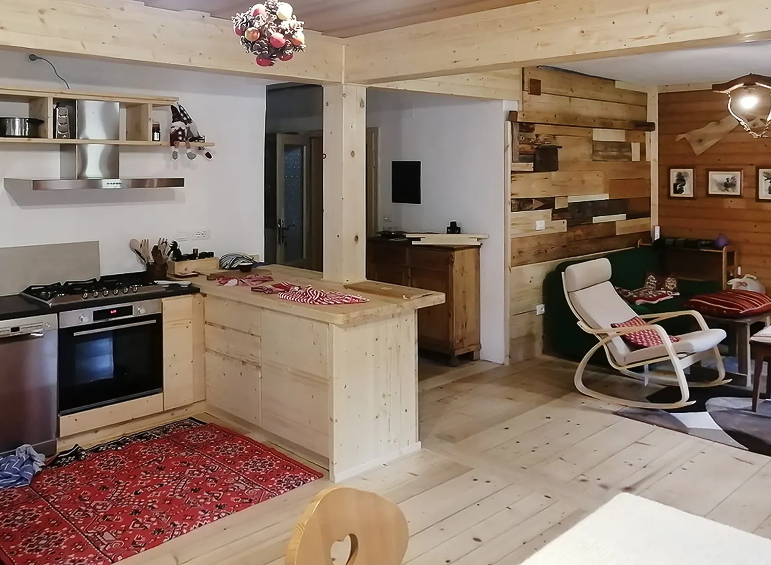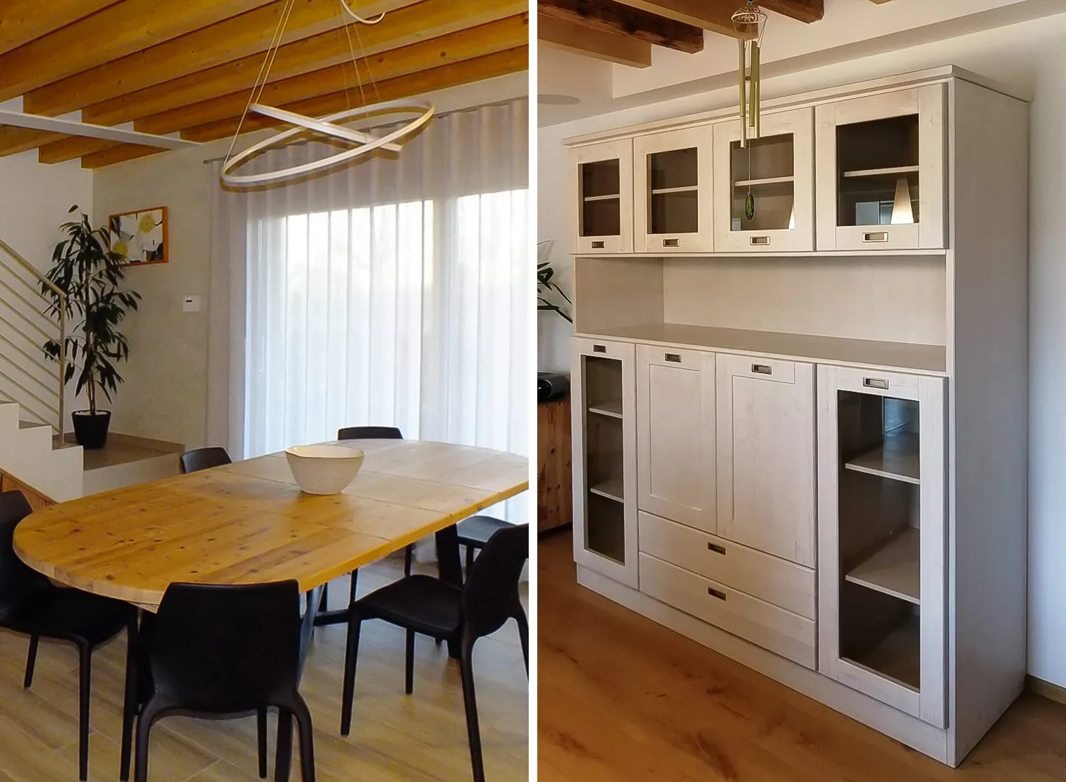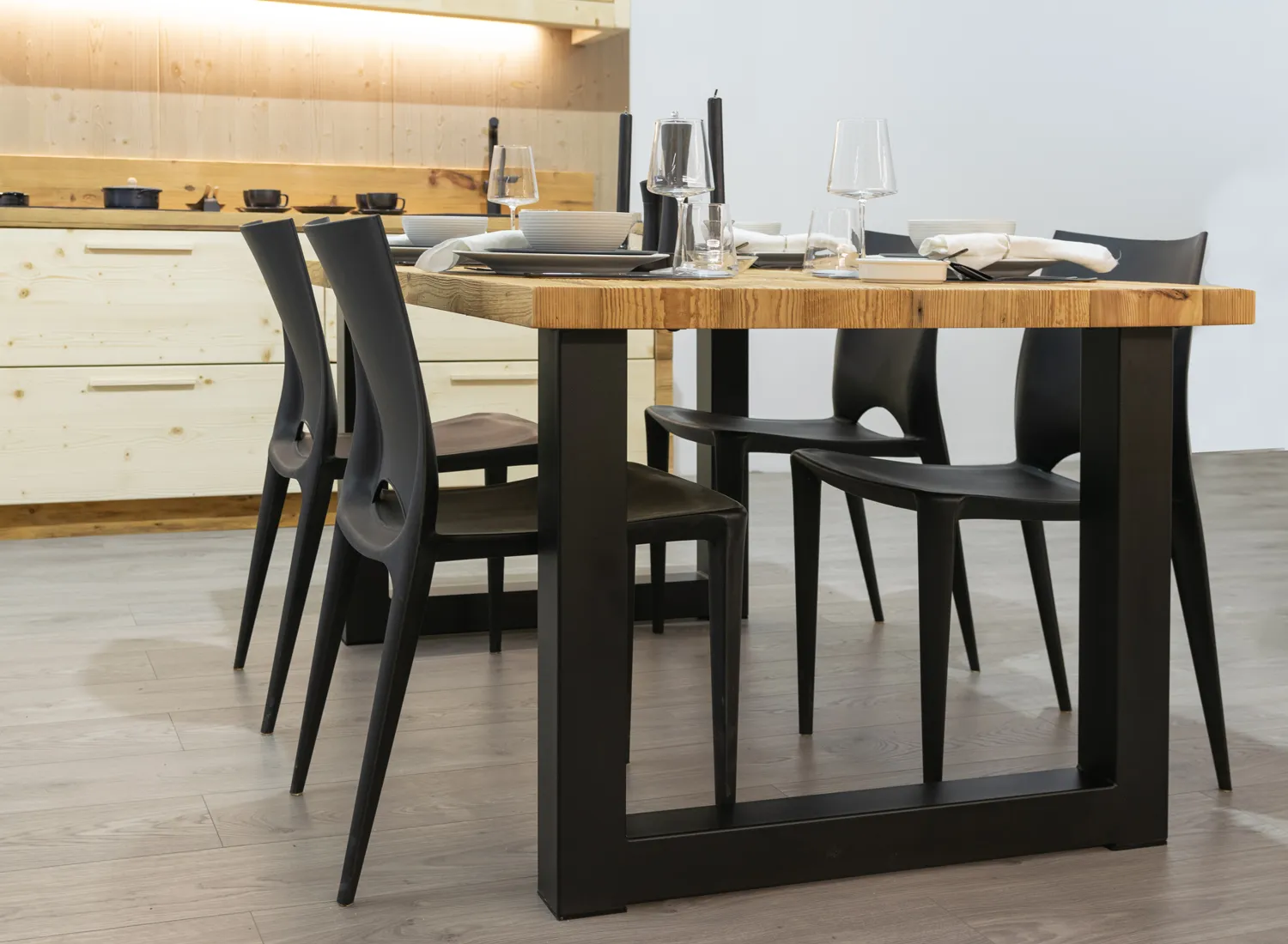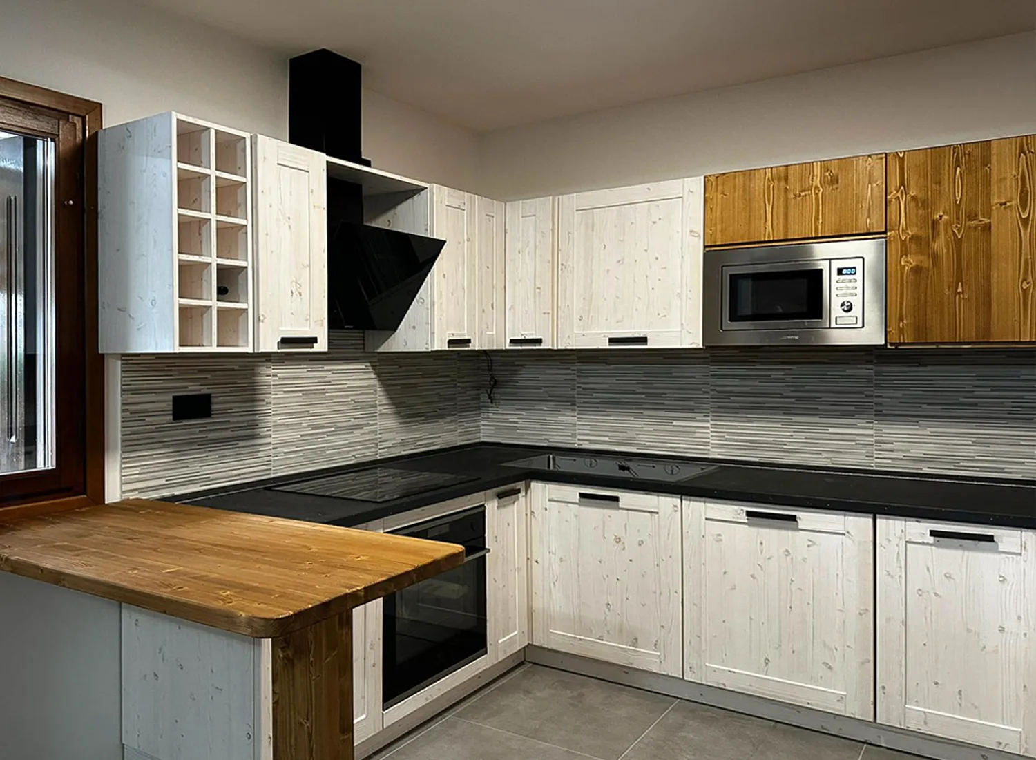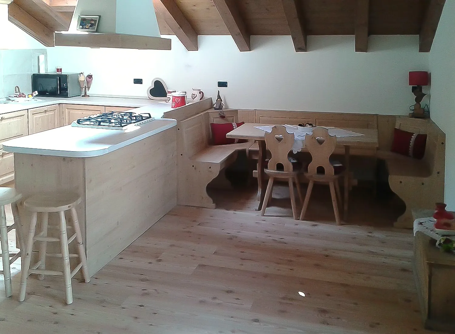 Le varie colorazioni, le tipologie, e i numerosi modelli di cucina in abete massello permettono di creare fantastici giochi di linee e di luce, che si integrano perfettamente con le composizioni create.