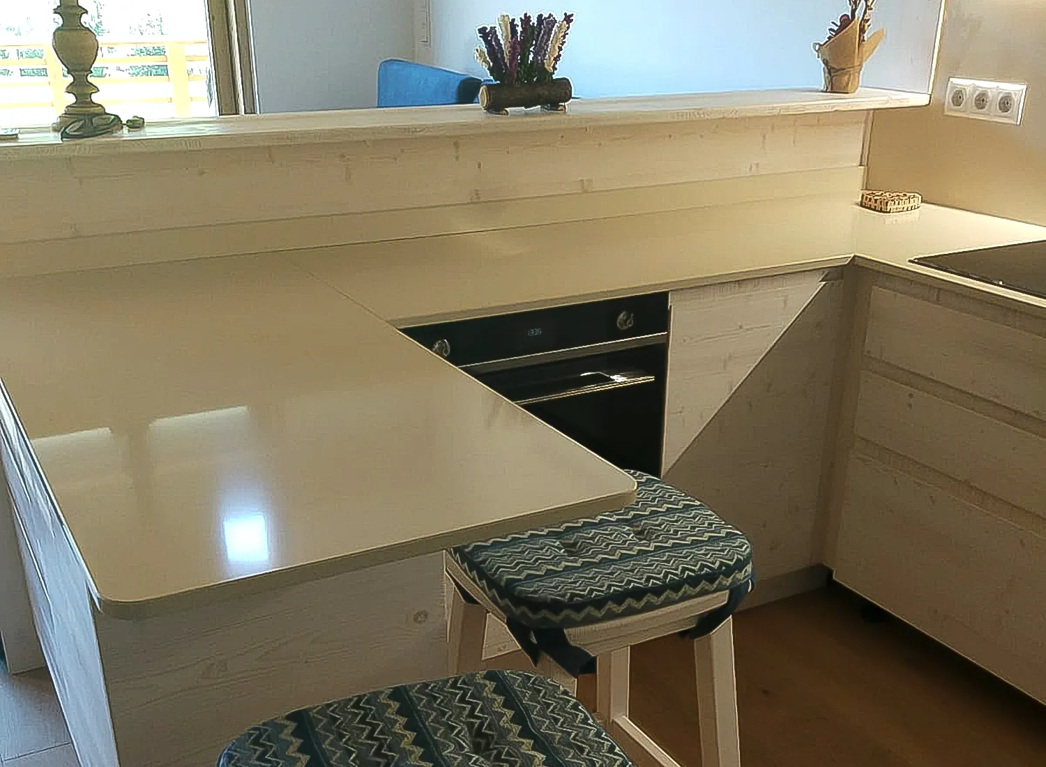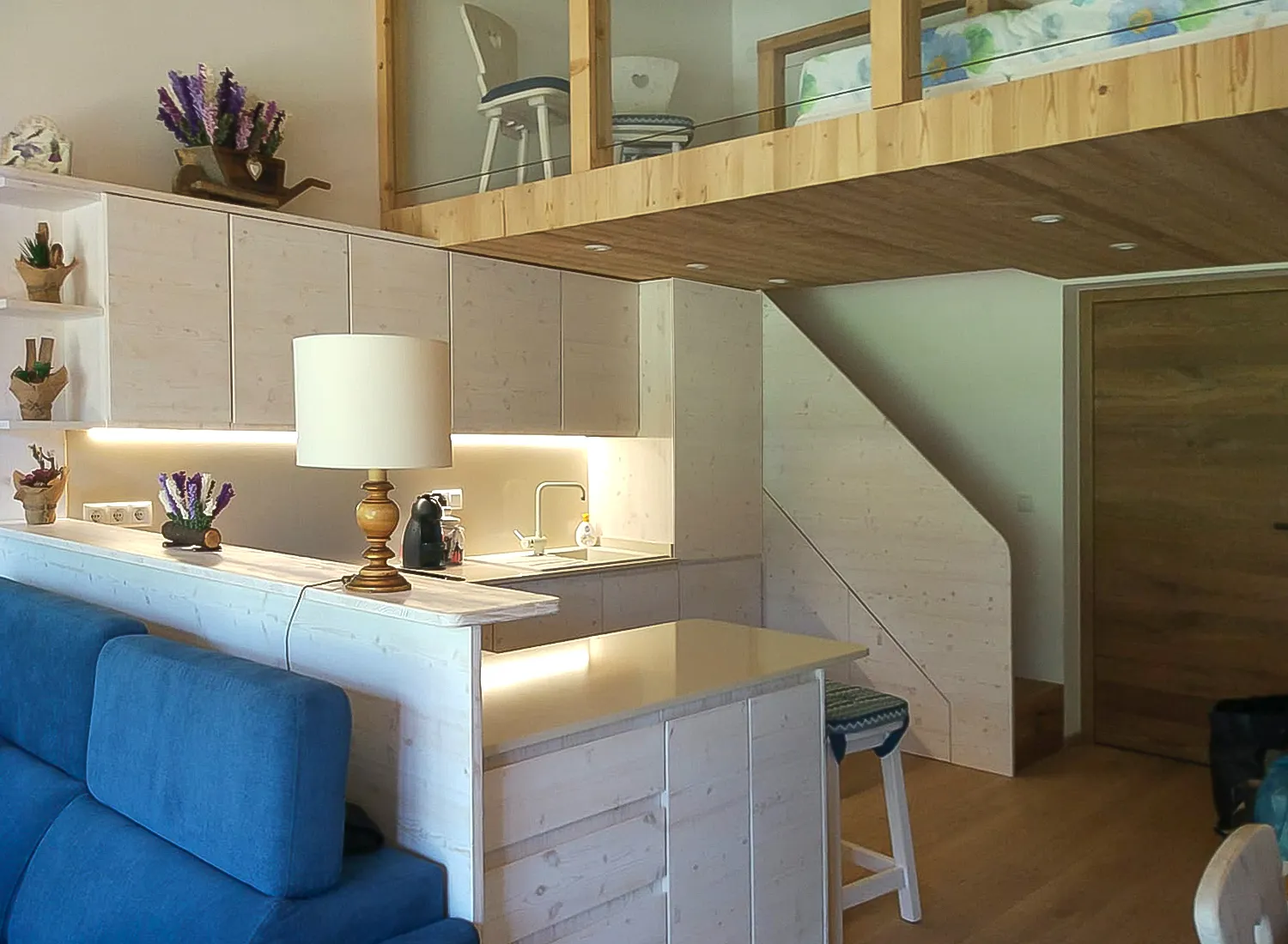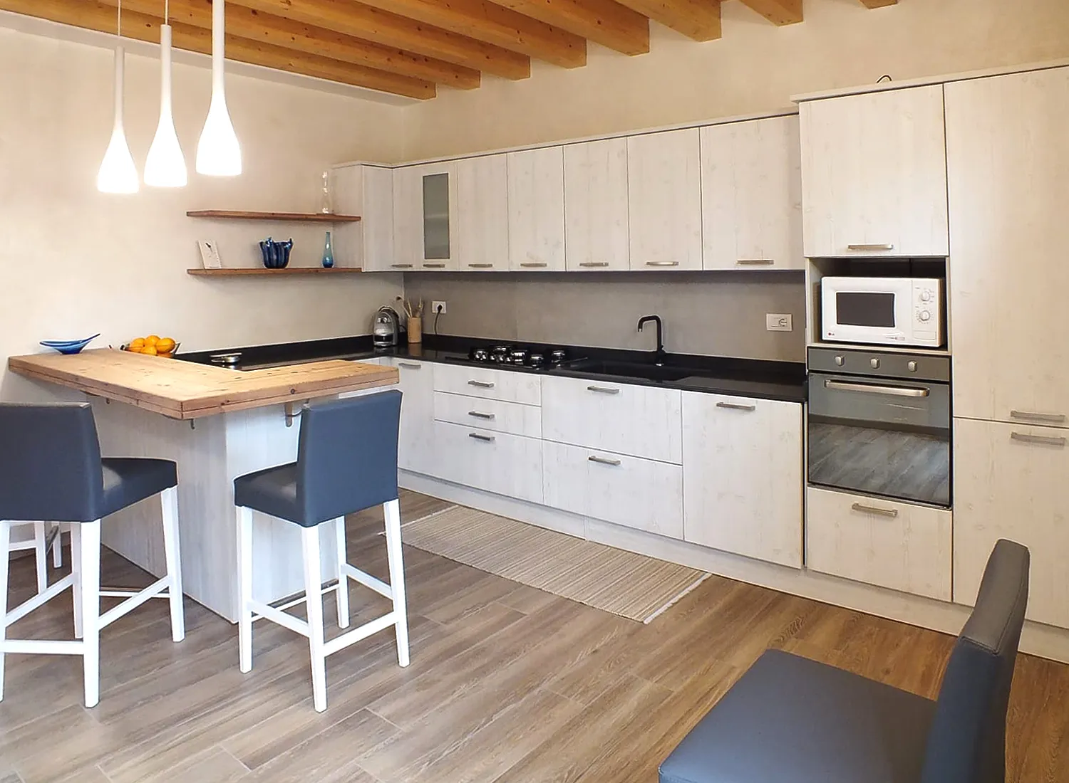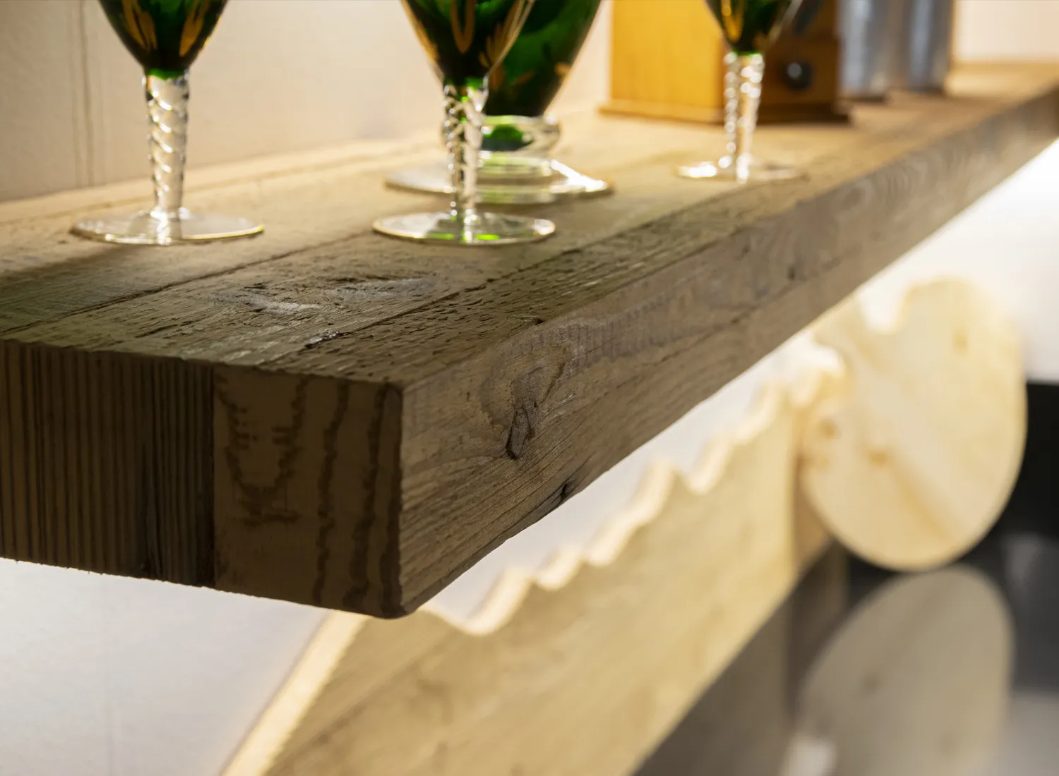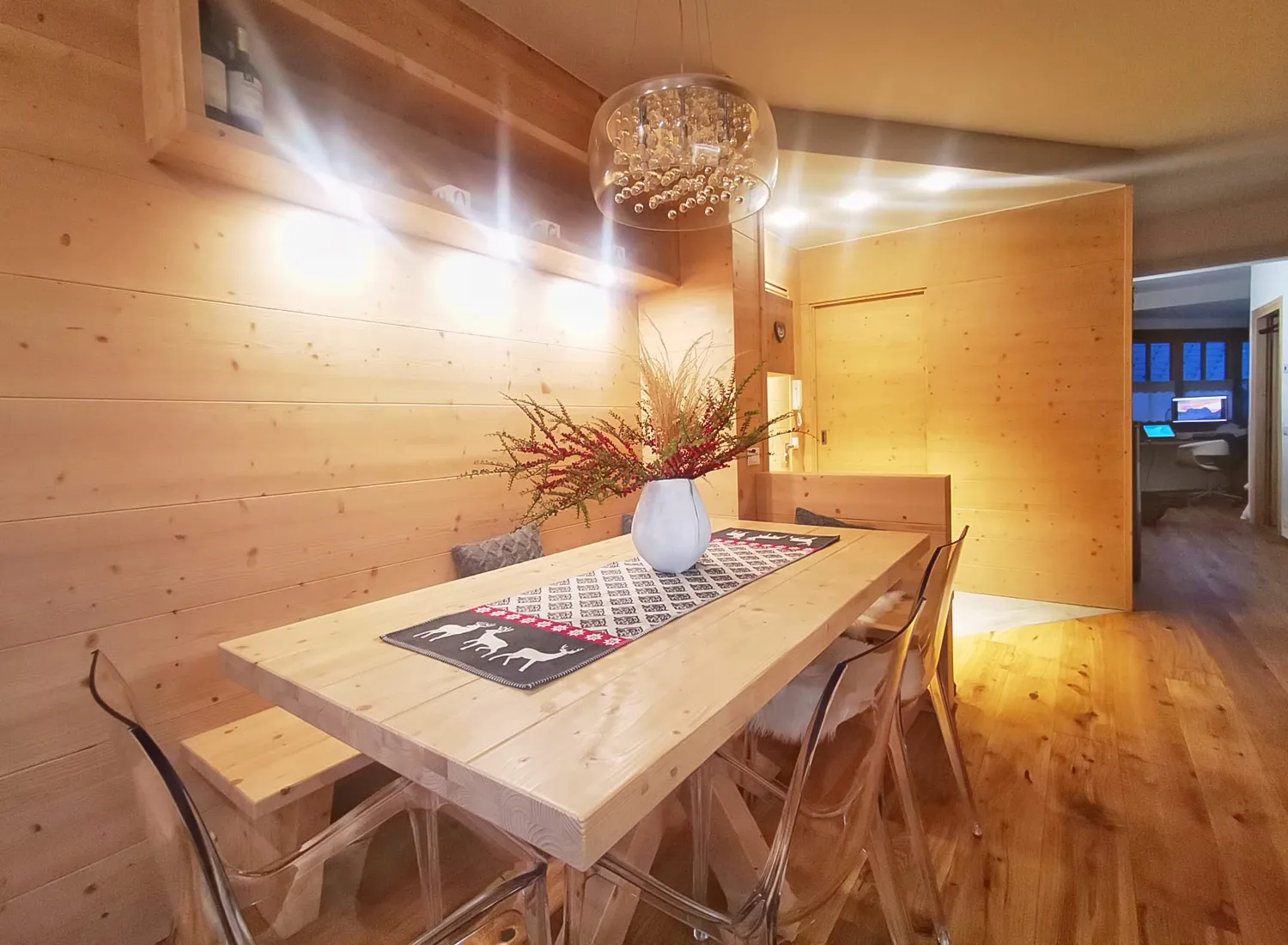 Le varie colorazioni, le tipologie, e i numerosi modelli di cucina in abete massello permettono di creare fantastici giochi di linee e di luce, che si integrano perfettamente con le composizioni create.